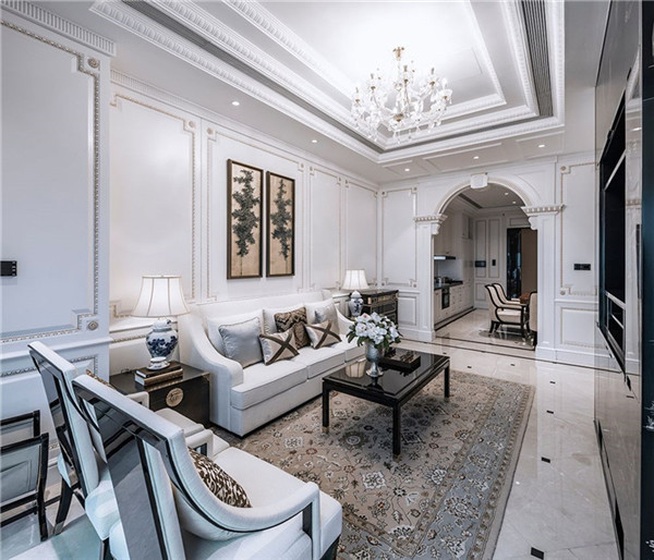 本项目公寓部分室内硬装、软装设计均由港源设计团队完成。设计师从豪华汽车、游艇、私人飞机的高品质装潢中获取设计灵感;设计风格采用改良的古典欧式风格,从简单到繁杂、从整体到局部,精雕细琢,镶花刻金都给人一丝不苟的印象,将豪华、优雅的涵义以新时代的面貌予以呈现,并保留了材质、色彩的基本风格,可以强烈地感受传统的历史痕迹与浑厚的文化底蕴,同时又摒弃了过于复杂的肌理和装饰。
