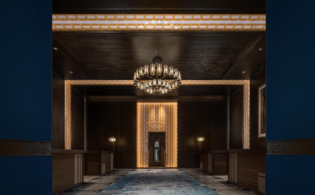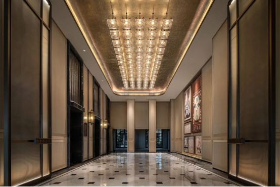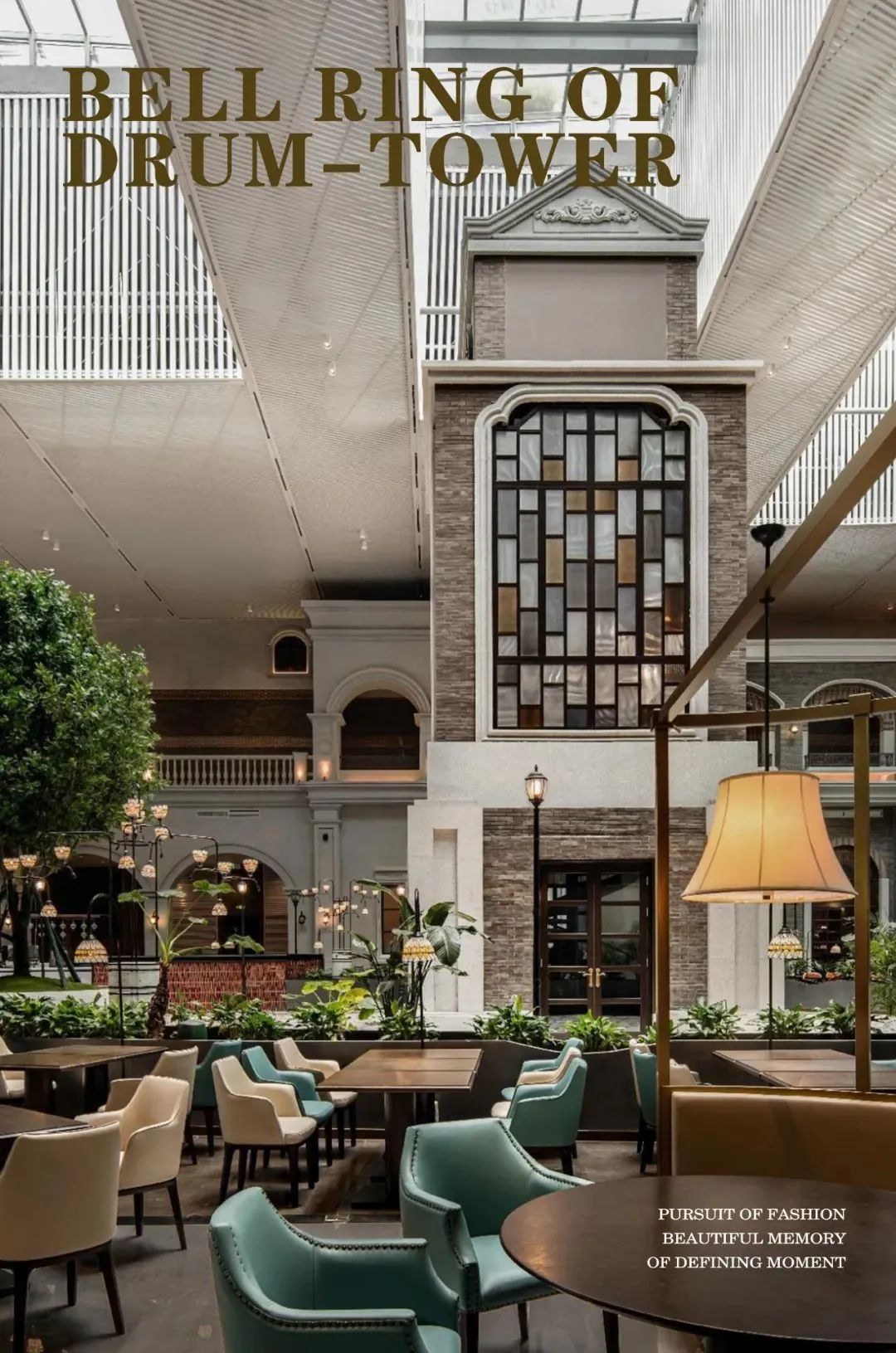 钟楼做为民国时期市中心的一个重要地标,被运用到共享大堂的中心广场位置,广场的设计是民国时代的城市建设缩影,共享大堂做为施柏阁大观酒店与皇冠酒店的大堂吧及全日餐使用,立面上使用软磁材料,塑造民国风立面,打造民国街区,伴随着悠悠的钟声将人民带回那个激荡而浪漫的年代。