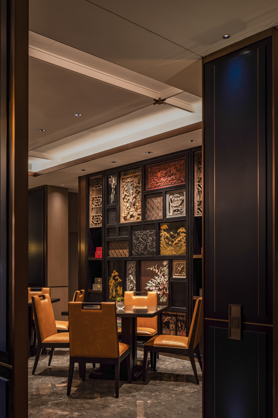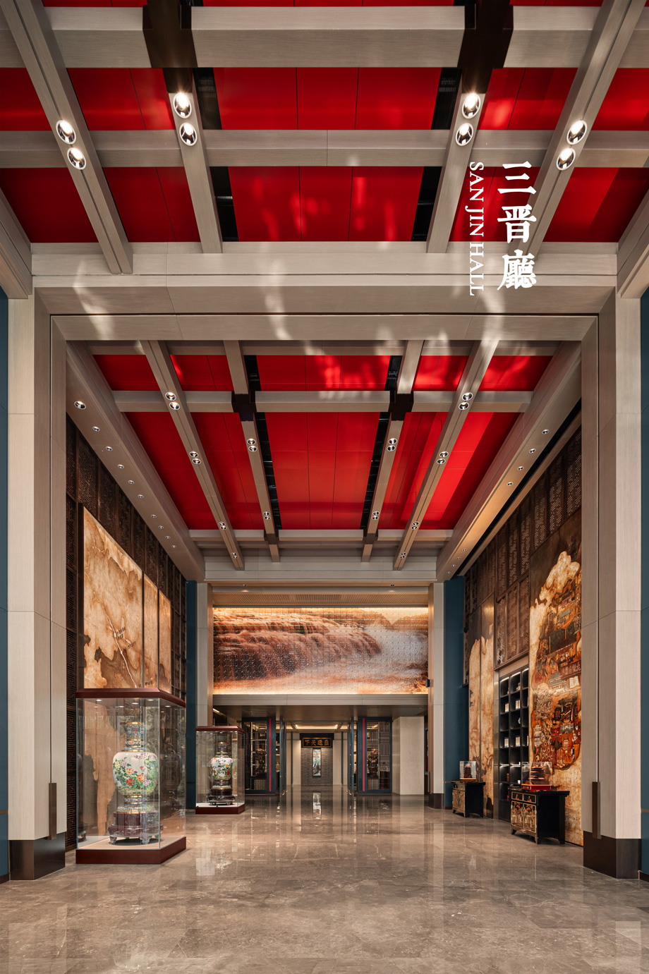将非遗从 “展品” 转化为空间组成部分 —— 大堂以介休琉璃复刻麒麟八宝纹样作照壁,客房门楣用推光漆绘制晋商院落剪影,中餐厅隔断采用堆锦工艺呈现晋商饮食文化,形成 “一步一非遗,一景一叙事” 的沉浸式体验,实现传统技艺现代化转译的高阶表达。